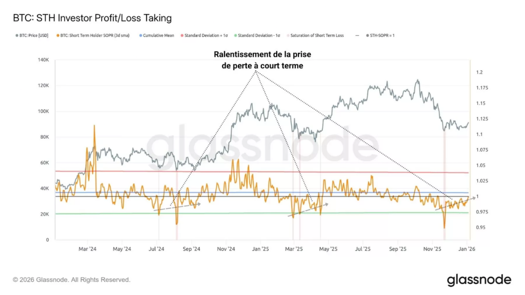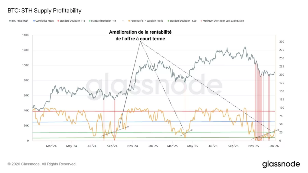 • Les données on-chain indiquent une amélioration progressive de la situation des investisseurs à court terme.