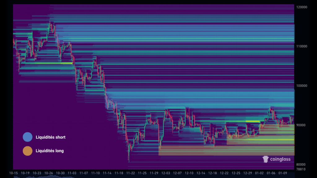 Sur les marchés futures, d’importantes liquidités long et short se sont accumulées autour du prix, alimentant à la fois des scénarios de short squeeze et un retour potentiel vers les 85 000 $.